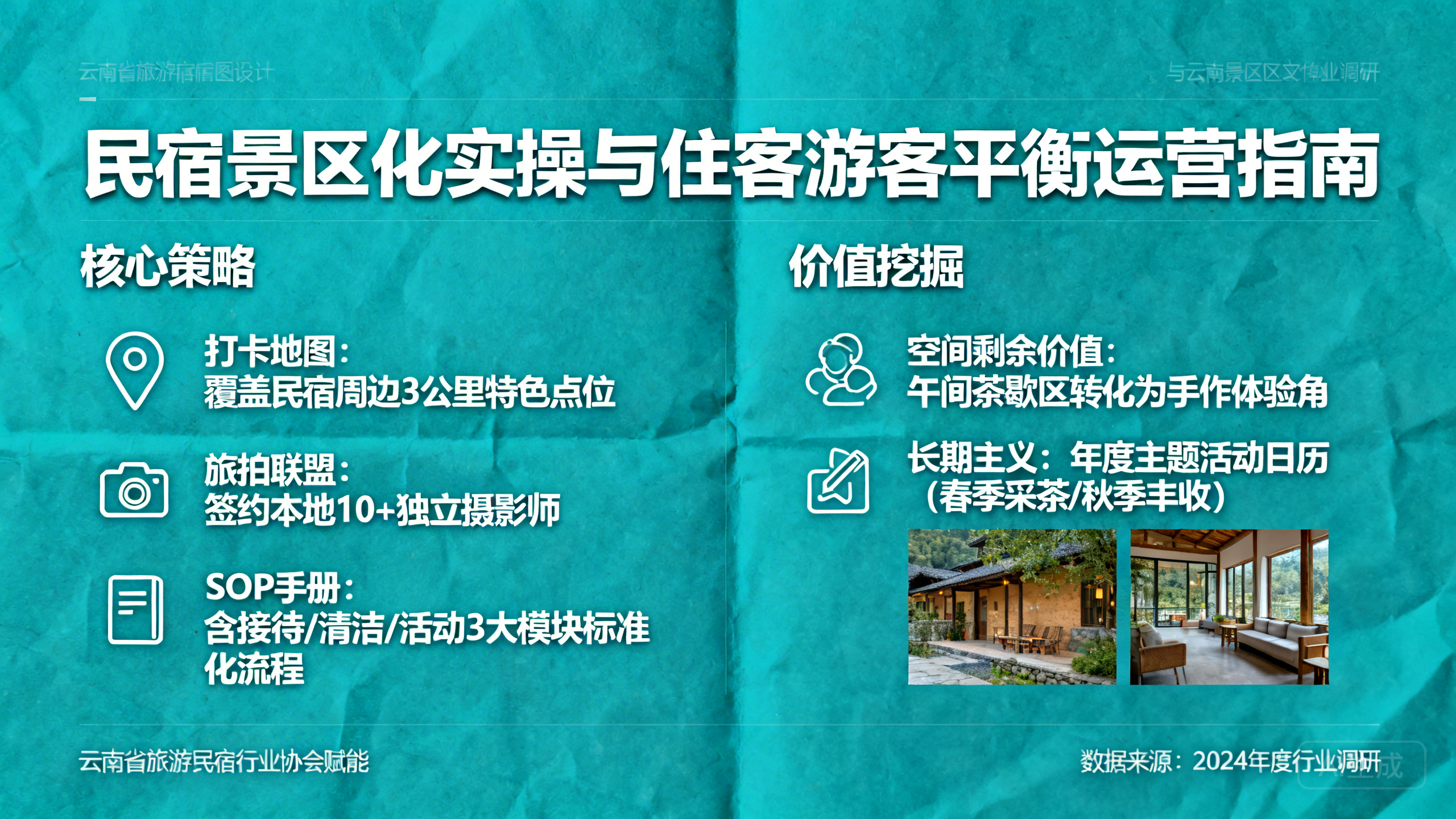 协会教研组正在编写《民宿景区化运营手册》。从动线设计、门票(低消)定价、游客接待话术,到危机公关,手把手教会员如何把“流量”变“留量”,把“过客”变“财客”。
